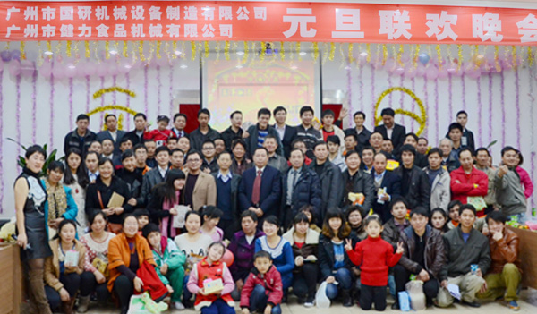 元月11日晚,广州市国研机械设备制造有限公司大会议室装扮一新、灯火璀璨。由广州市健力食品机械有限公司、广州市华辉食品机械有限公司和广州市国研机械设备制造有限公司联合举办的“庆元旦•迎新春”联合晚会在这里隆重举行。晚会温馨、浪漫、快乐,优美的歌声,迷人的舞姿,精彩的小品让大家度过了一个开心的夜晚。