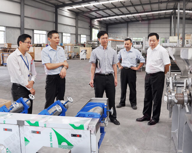 李局长一行来到公司就深入车间了解生产情况,在河粉机装配车间李局长详细询问了河粉机的功能原理和价格,当得知国研牌河粉机占领了国内主要市场时十分高兴。李局长一行还在公司党支部活动室观看了广州电视台播出的报道我司开展党建工作的《红棉璀璨》专题节目,随后开展了讨论,对我司党建工作开展的有声有色给予了高度评价。