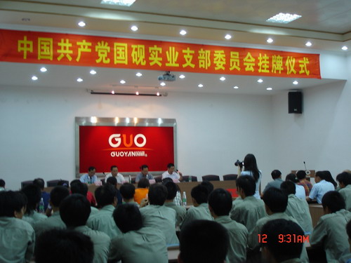 仪式由街党工委副书记赵思能同志主持,街道办事处主任周国栋、公司董事长总经理王声位分别在挂牌揭幕仪式上作了热情洋溢的讲活,并为国砚实业有限公司党支部正式挂牌揭幕。