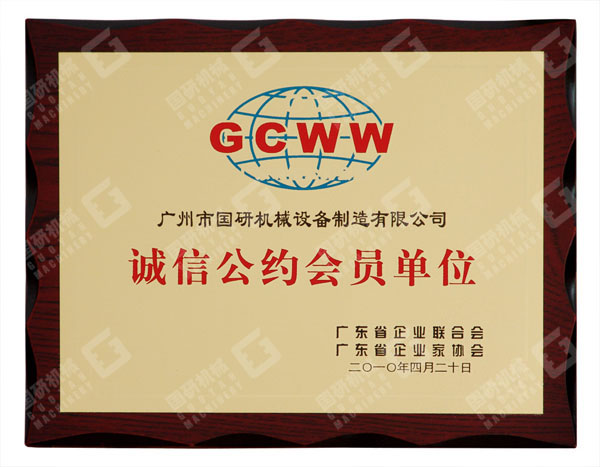 此次被评为“2009年度广东省诚信示范企业”,是对国研机械的一次巨大鼓舞和鞭策。国研机械将再接再厉,以“诚信经营”作为企业生存之本,忠实履行企业经济责任与社会责任,做用户最信赖的企业,为社会提供最优质的产品与服务。