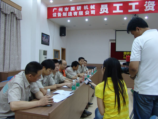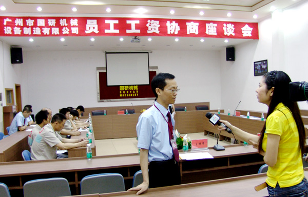 5月14日晚9:30分,中央电视台新闻频道“新闻1+1’ 节目以为题重点披露富士康等企业在工人工资方面存在的种种问题,同时正面报道了广州国研机械通过建立员工工资集体协商机制解决员工工资问题的先进经验。