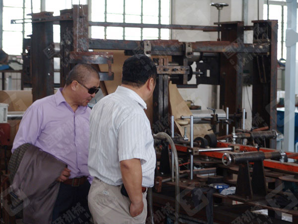 蒙古工商会代表团成员在考察新研发的纸袋机